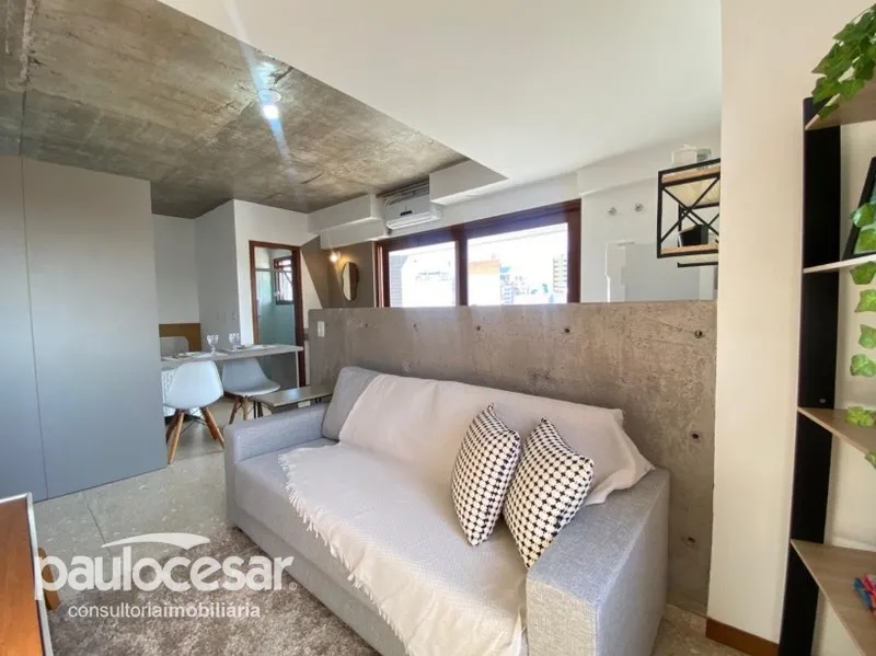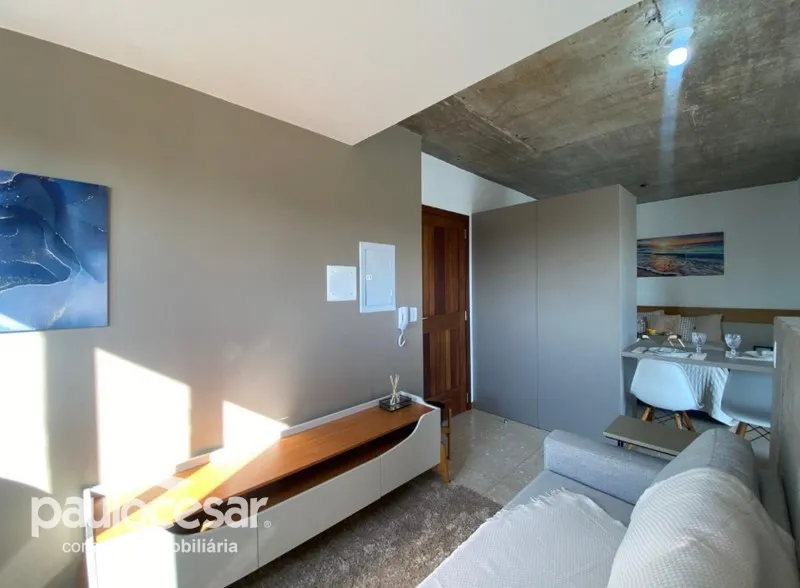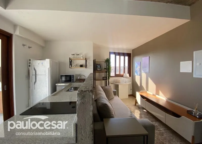Studio Mobiliado, Sacada com Churrasqueira, Banheiro Americano, Sala Estar Integrada Cozinha, Garagem 1 Carro.